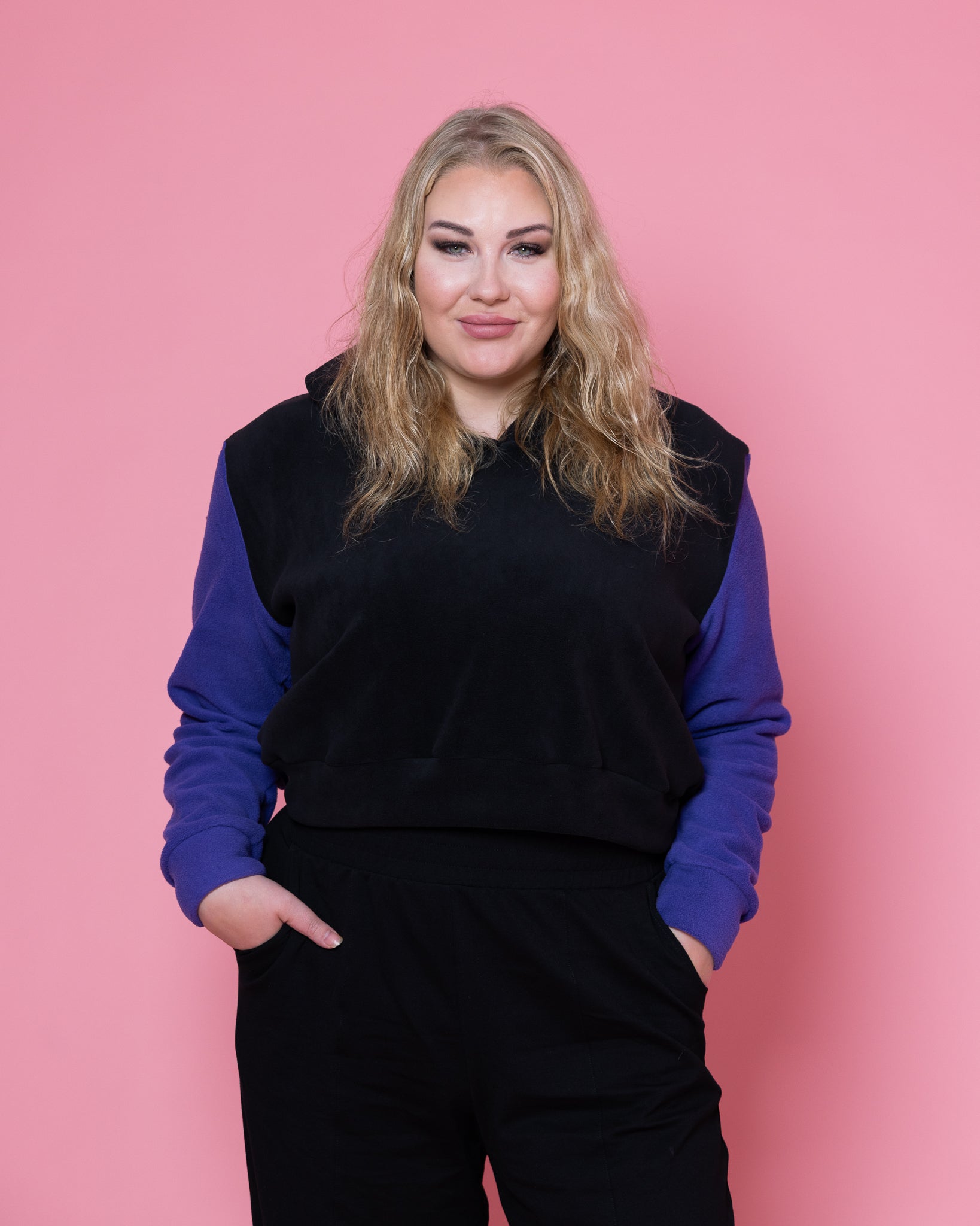 Everyday huppari crop, fleece musta/violetti